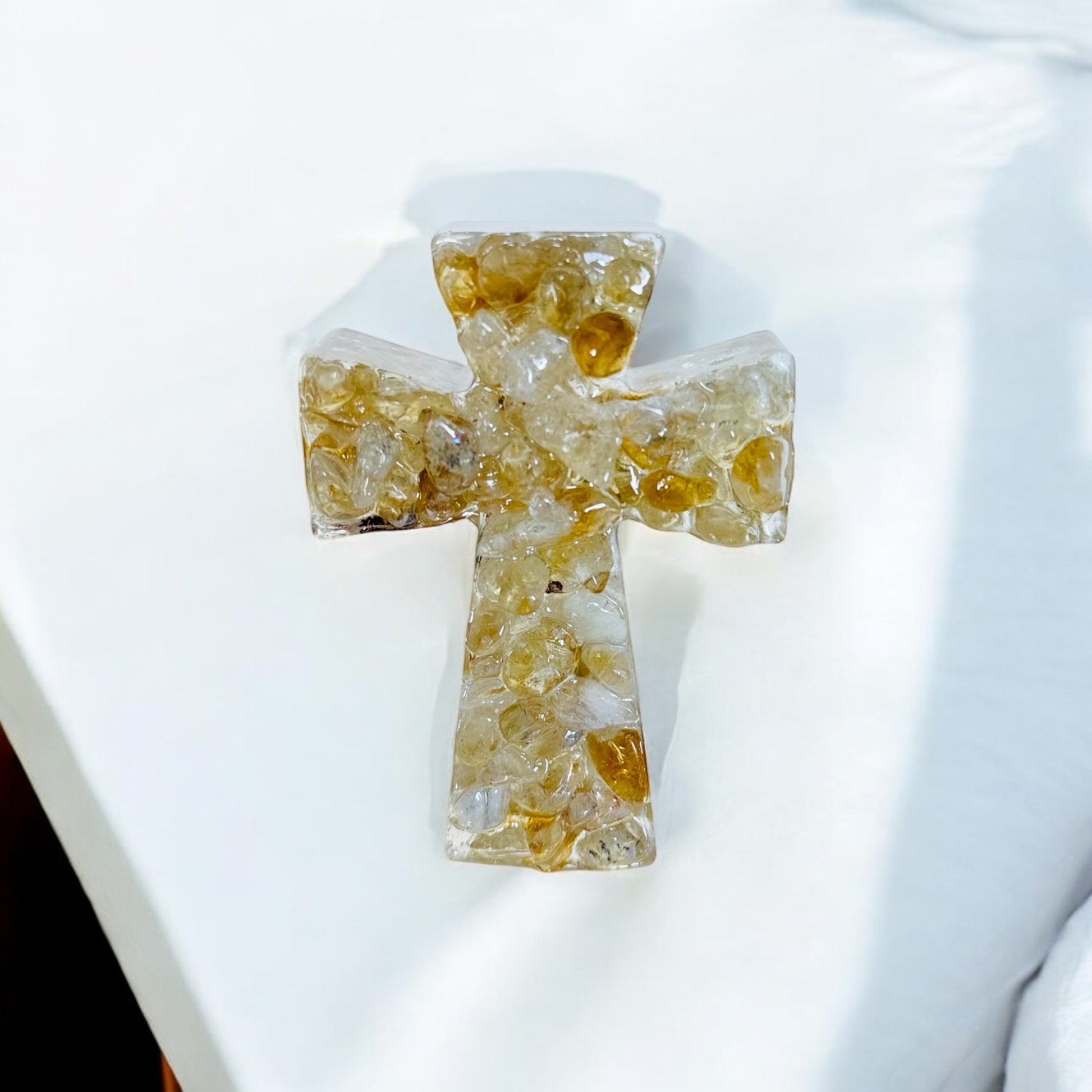 Our handmade Citrine Crystal Cross is a radiant symbol of Light and Positivity, crafted with care by skilled artisans. Each piece features genuine Citrine, known for its Warm Golden Hues and ability to attract Abundance and Joy 💛