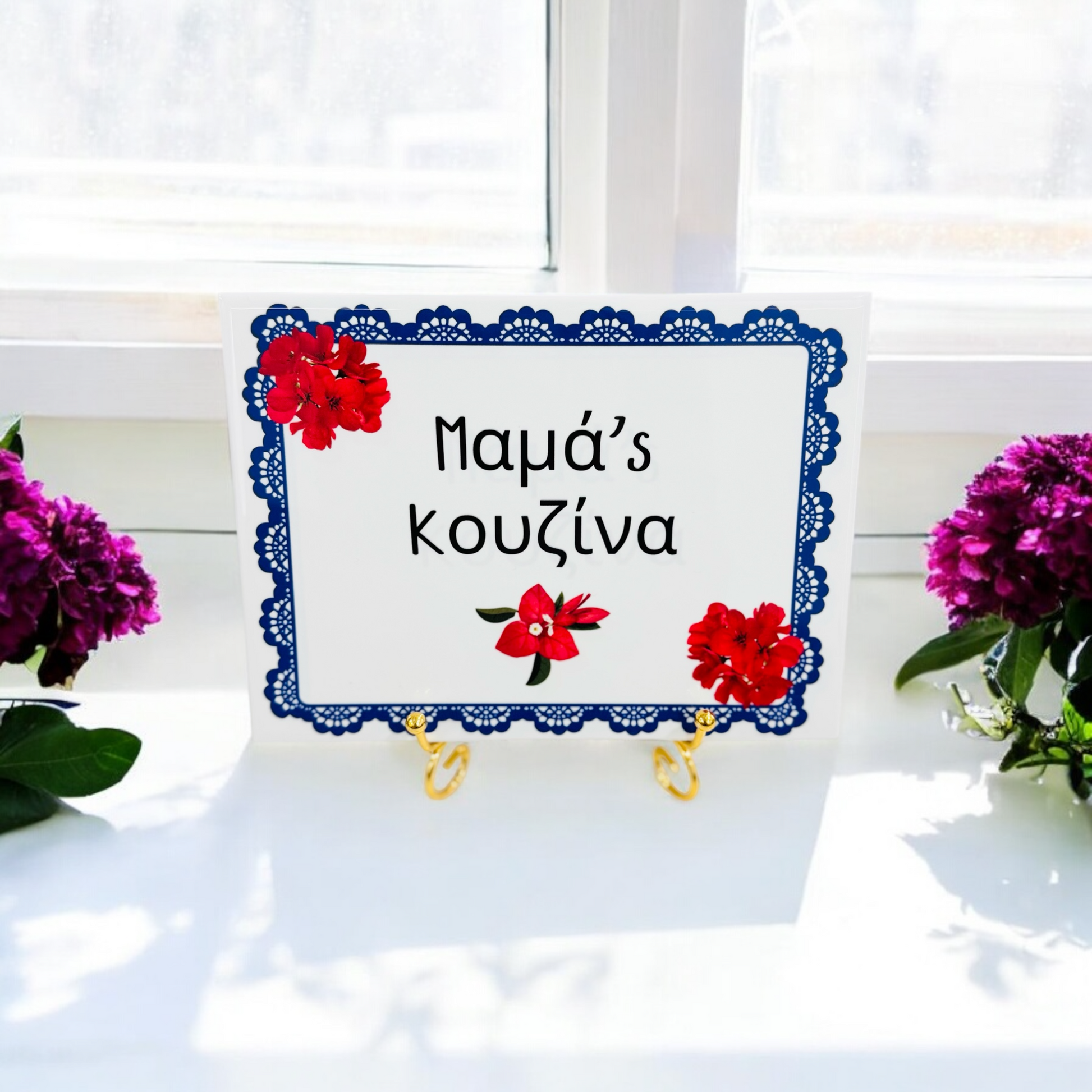 Greek 'Mama's Kouzina' Ceramic Tile - Greek Flowers