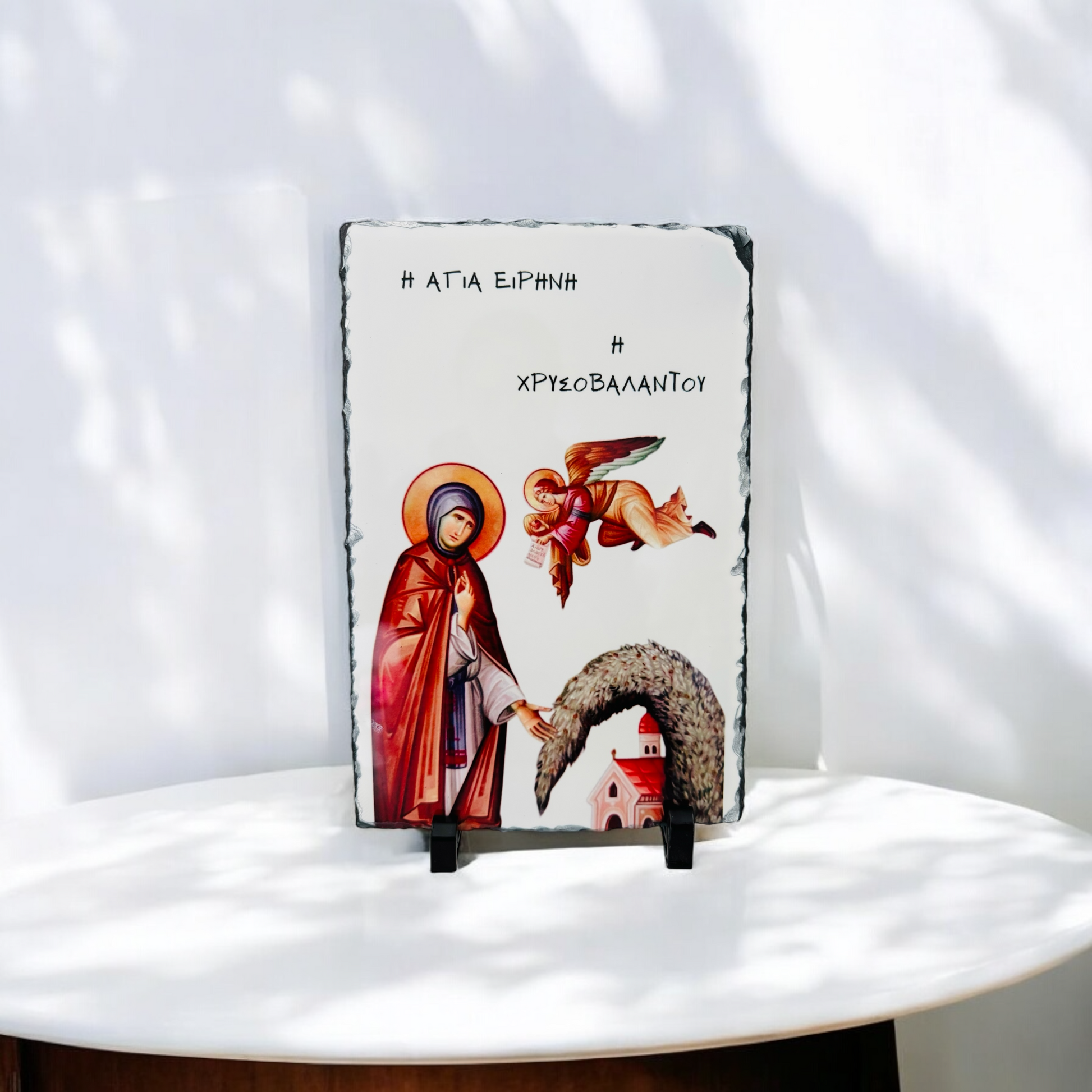 Honour the Divine protection and Spiritual strength of Saint Irene Chrysovalantou with our beautifully crafted Greek Slate Tile ✨