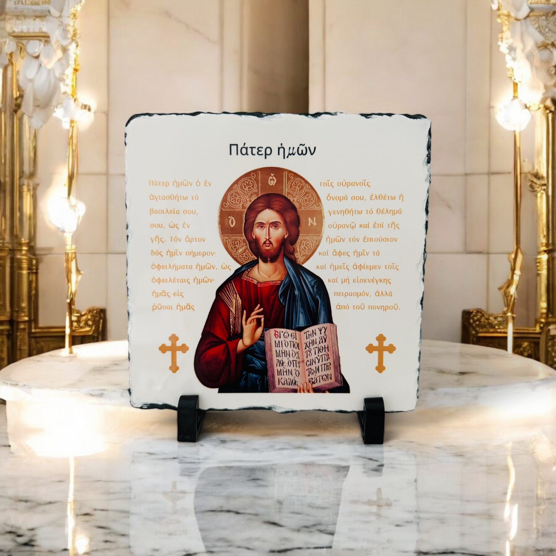 The Lord’s Prayer Slate Tile is a stunning tribute to Faith and Devotion, beautifully featuring an image of God alongside the Lord’s Prayer in its original Greek form. This handcrafted Slate Tile invites the sacred words of Jesus into your home, bringing a sense of Peace, Protection, and Divine connection. The Greek translation of the Prayer offers a deeper, historical link to the early Christian tradition, making it a meaningful addition to any Altar, prayer corner, or sacred space ✨